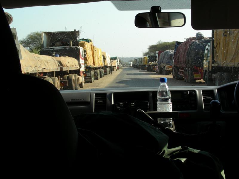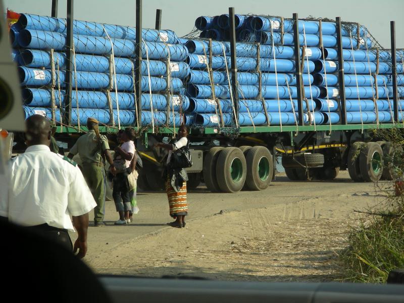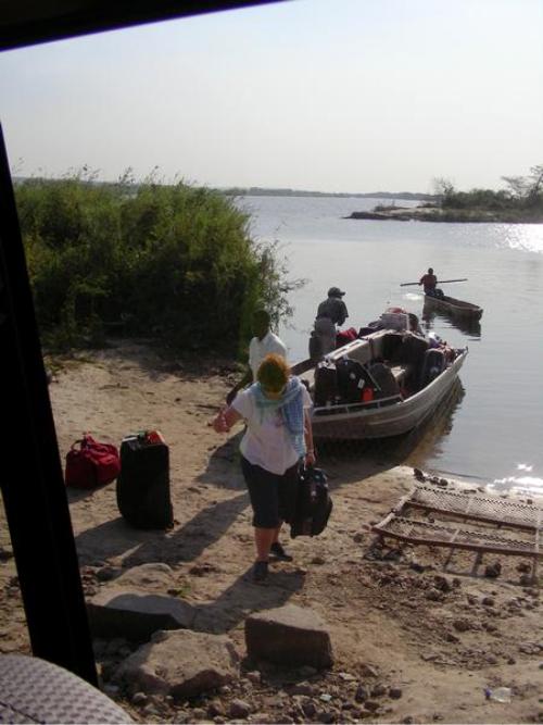 At the Zambezi river crossing the trucks queue for days and the girls do