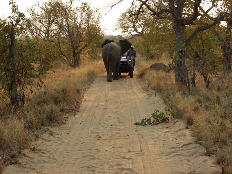 agressivly flapping the ears and trumpeting, then she fronted onto the road and charged